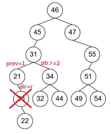 // ptr[dir] 為祖先的 prev 另一邊的子樹高