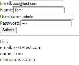 {email: '[email protected]', name: 'Tom', username: 'admin', password: '1234'}